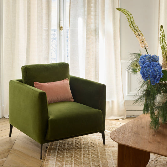 Fauteuil ODELLE velours vert olivePrix habituel 1,190.00€Prix habituelPrix unitaire parPrix soldé 1,190.00€ -